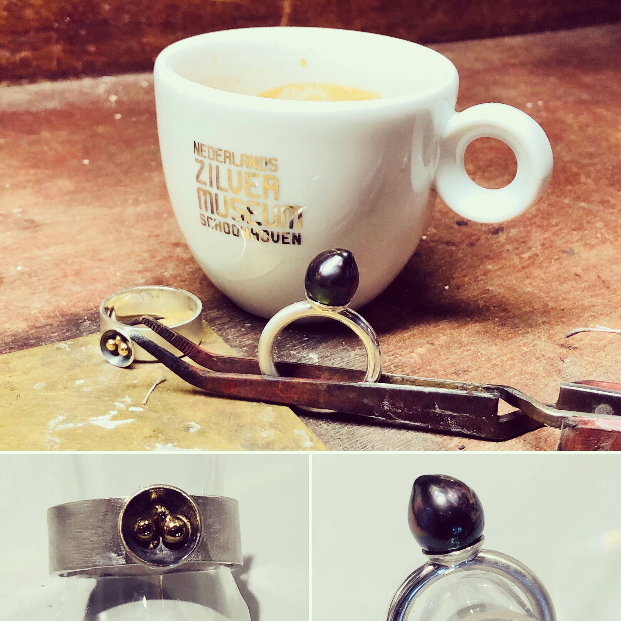 SILVER RING WITH GOLD DETAILS